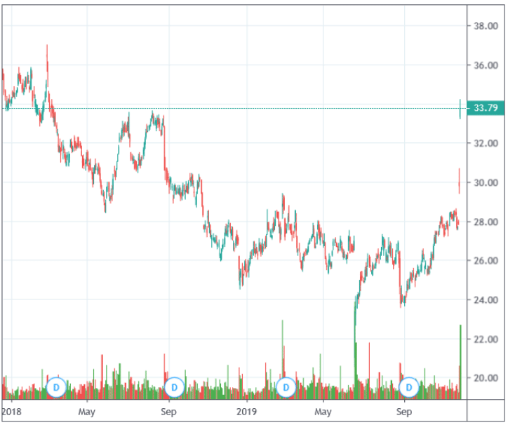 ​Caltex shares jumped +13% yesterday after Canadian convenience store operator Alimentation Couche-Tard lobbed an $8.6 billion takeover offer at Caltex Australia. The ​board said discussions were at a preliminary stage and there was no certainty the talks would result in a transaction.