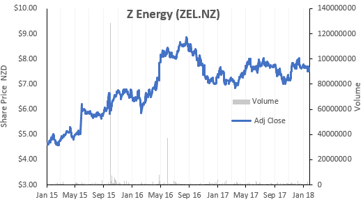 In other recent news flow, Z Energy reported poor operational performance for the 3 months to 31 December 2017 with unexpected supply disruptions and the rise in price of crude oil since September being the major factors driving the downgrade. Z Energy have downgraded their 2018 full year earnings guidance from $445m – $475m, down to a lower range of $430 – $455m.