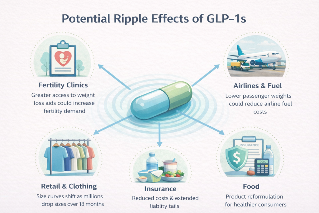 Weight loss improves fertility outcomes. If GLP-1s expand access to effective weight management, fertility clinic demand could rise. A drug designed for metabolic control could influence demographics.