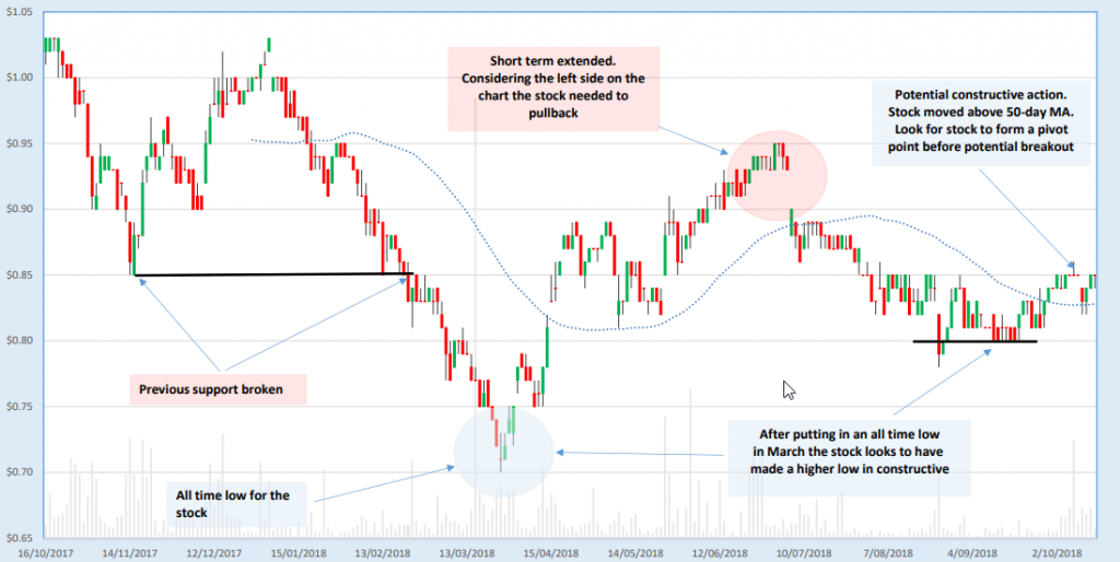 Technical Summary: MPG has been a disappointing stock for long term holders as it has moved from around $2 on its IPO to lows of $0.70 earlier this year. The stock is currently trading around $0.85. In recent months the price action is starting to look a little more constructive with the stock initially rallying off its lows before becoming overextended. The stock recently put in a higher low and has moved above its 50 day moving average. It will be interesting to see if the stock can form a pivot point and potentially set up for a breakout.