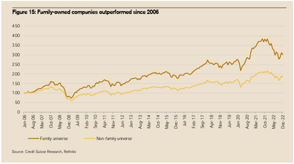 Credit Suisse tracked 1,000 globally listed companies where founders or family members hold more than 20% equity. Since 2006, these companies have generated 300 basis points of sector-adjusted excess return, every year.