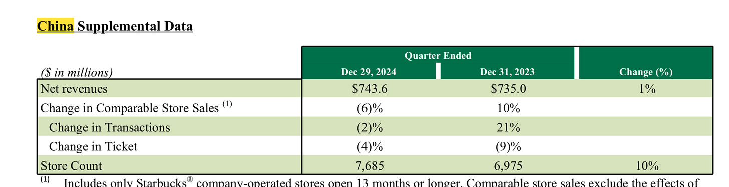 China remains the real weak spot, with sales declining 6% in spite of some price decreases. Luckin’ Coffee, in other words, to the moon.