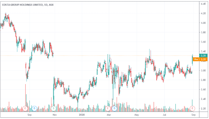 Shares in Costa Group (CGC) jumped +12% on Friday as the fresh fruit & vegetables producer released its 1st half results. Costa reported 1st half operating earnings of $94m, up 14%. International rose 98%, while Australian Produce fell 41%. The numbers were a touch below market consensus.