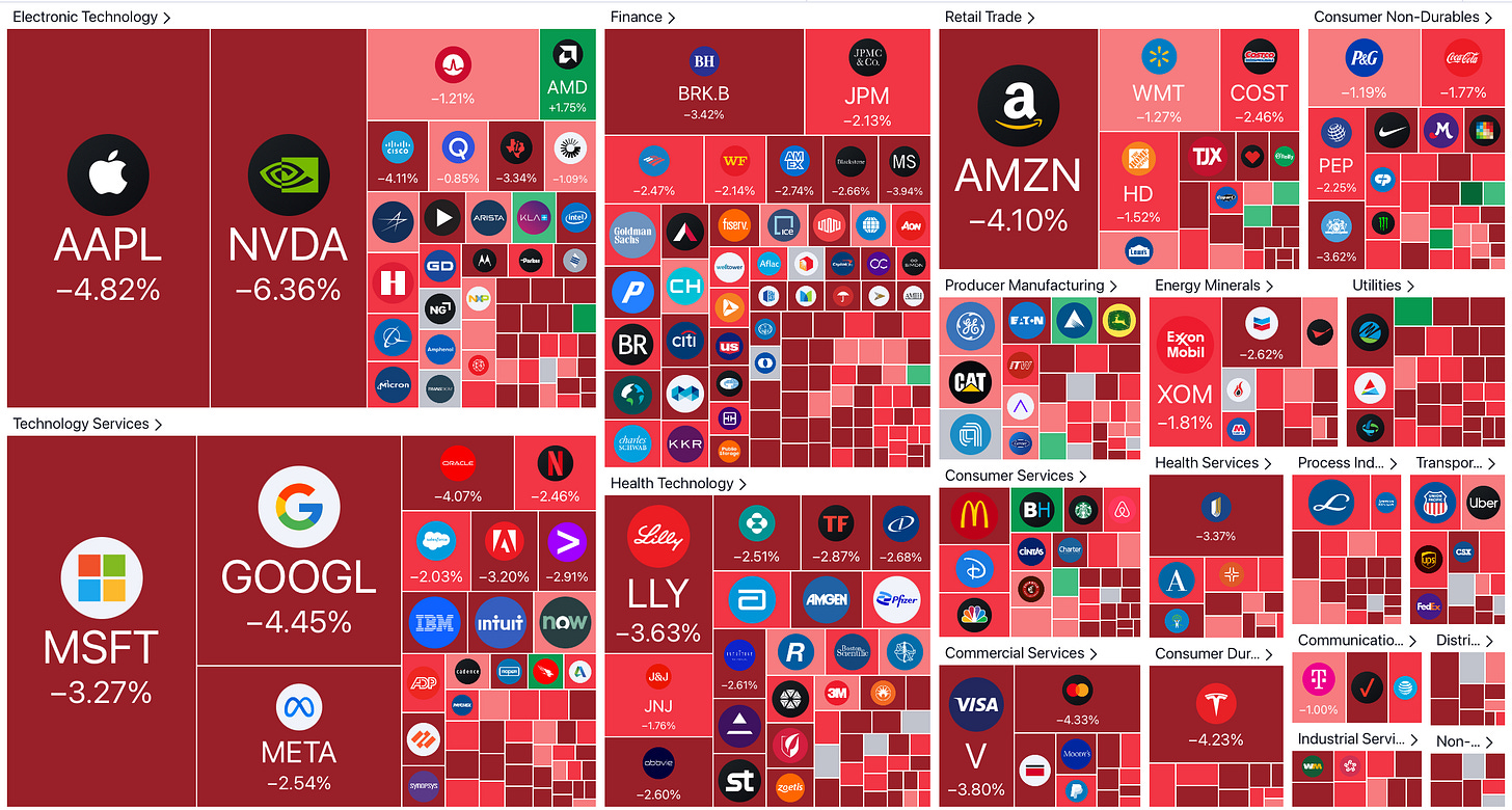 Anyway, I mean — stocks don’t only go up, I guess? Here’s a sea of red…